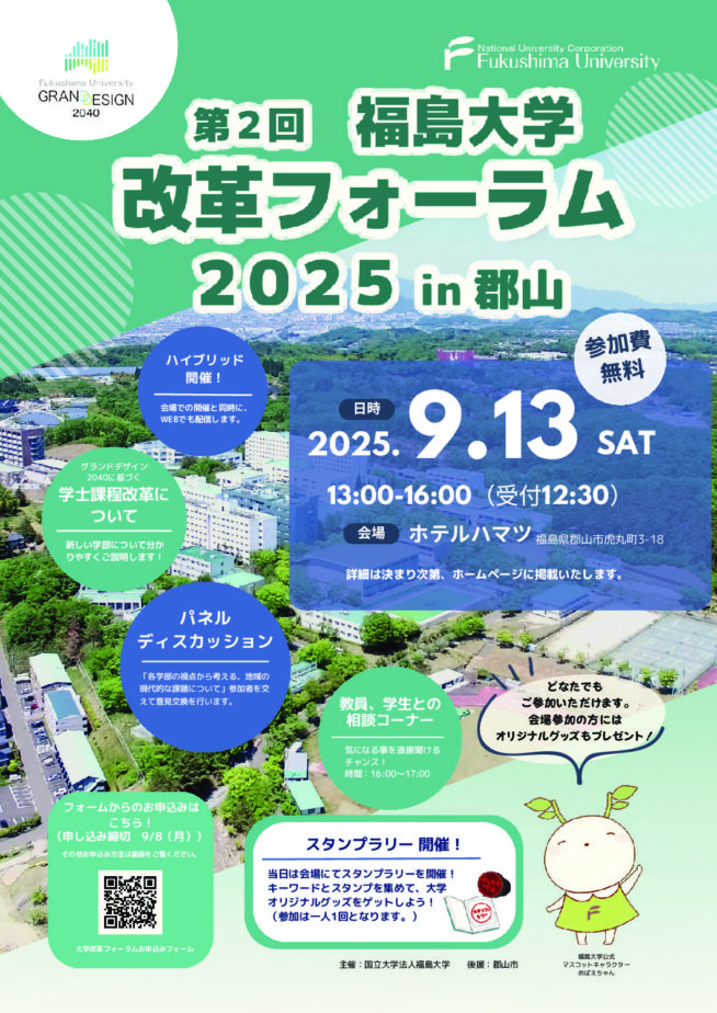 第二回福島大学改革フォーラム2025 in郡山を以下のとおり開催いたします。