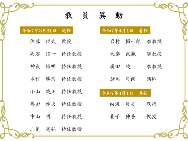 令和7年春 「教員異動」